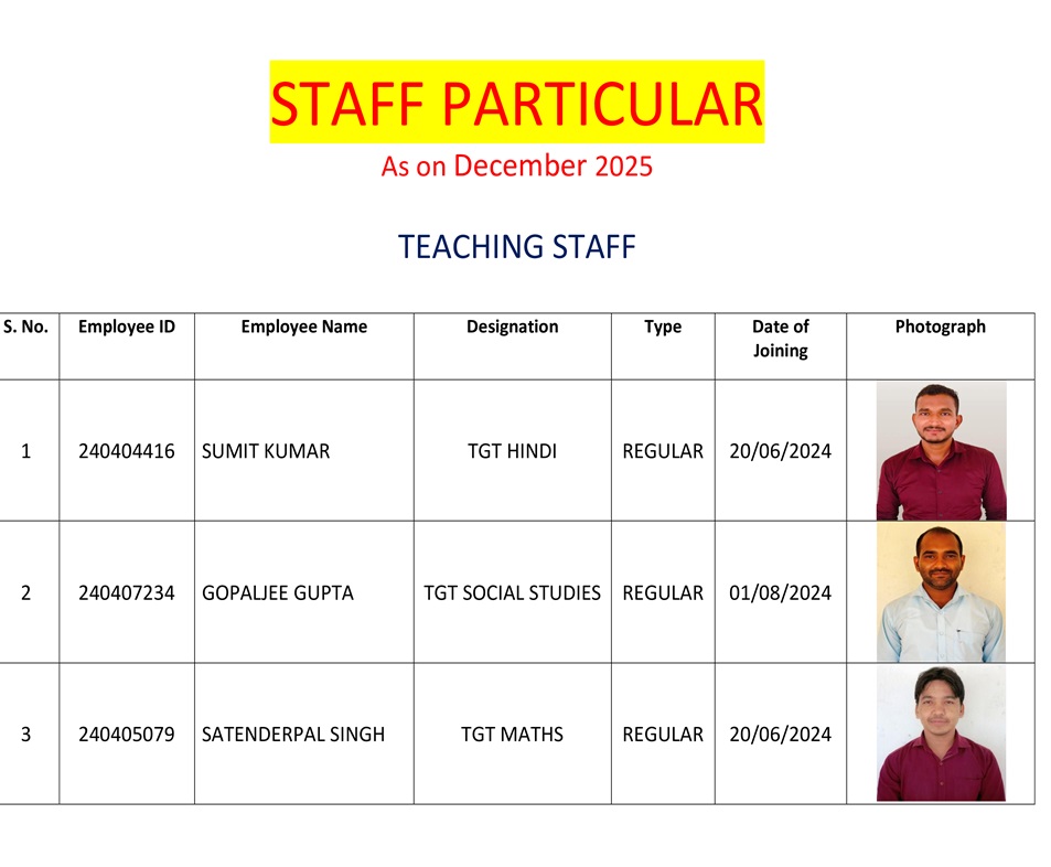 Staff Particular as on December 2025